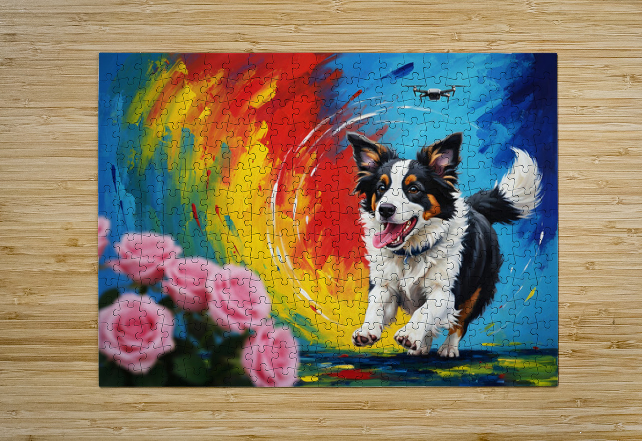 Tired Border Collie Puppy Rests After Exciting Adventure Puppy Prints Puzzle printing