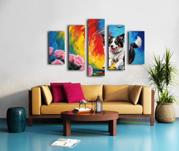 Tired Border Collie Puppy Rests After Exciting Adventure Canvas print