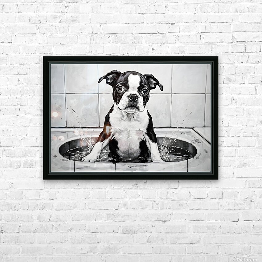 Get this artwork "Happy Boston Terrier Puppy Enjoys Sudsy Bath Time" in a framed print.