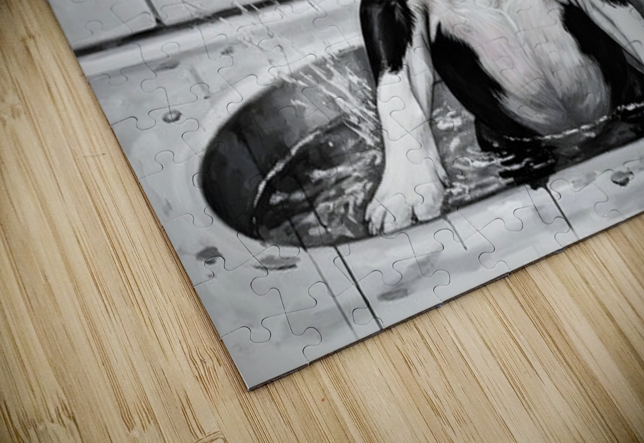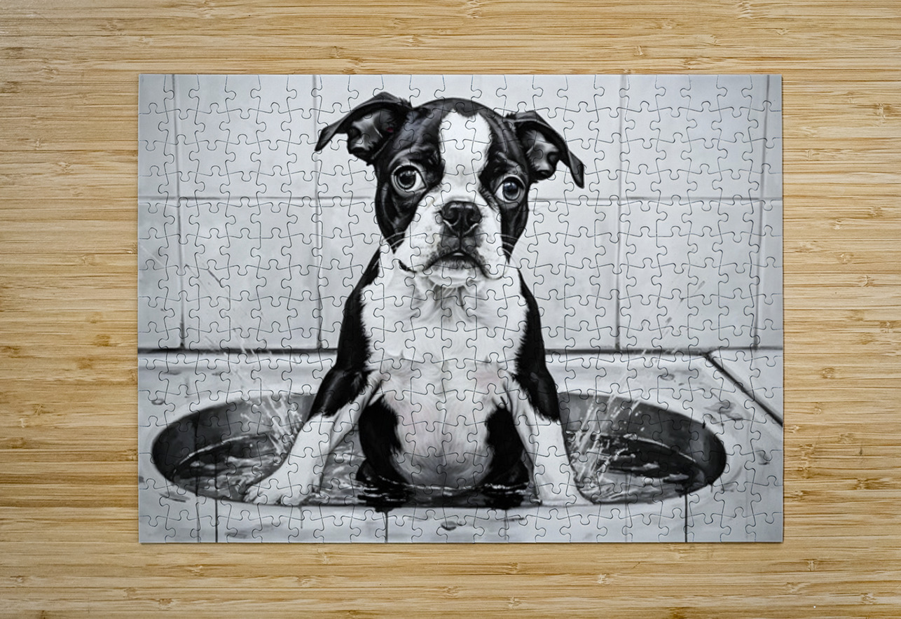 Happy Boston Terrier Puppy Enjoys Sudsy Bath Time Puppy Prints Puzzle printing