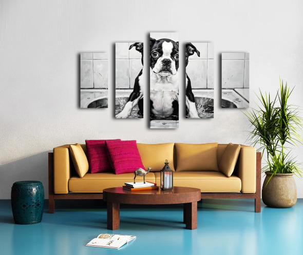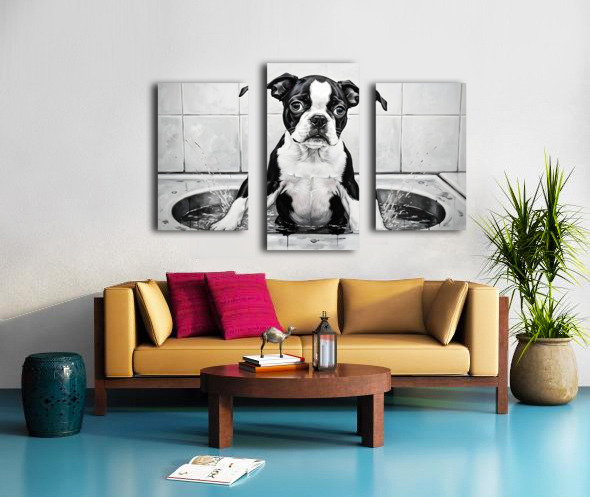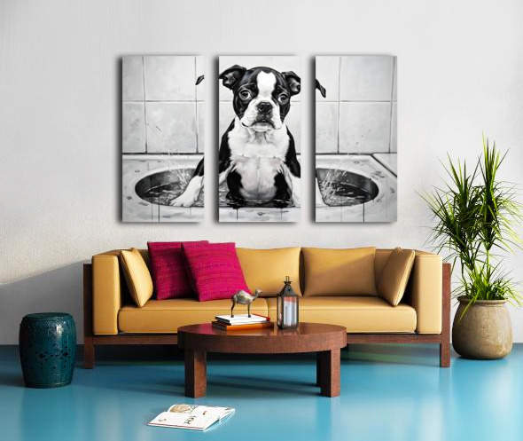 Happy Boston Terrier Puppy Enjoys Sudsy Bath Time Canvas print