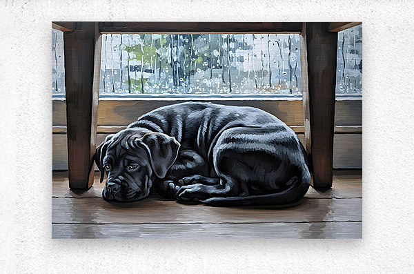 ABOUT THIS ARTWORK: BRAVE CANE CORSO PUPPY EMERGES FROM HIDING