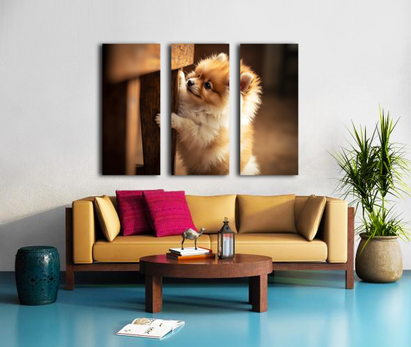 Pomeranian Puppy Watches Family Game Night Fun Canvas print