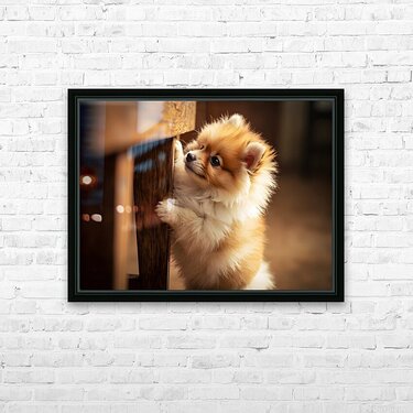 Pomeranian Puppy Watches Family Game Night Fun Picture Frame Printing