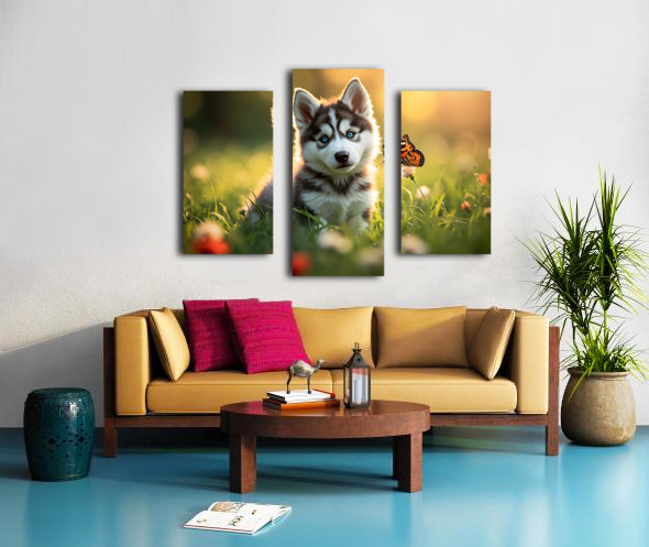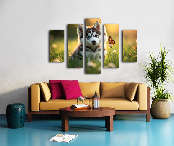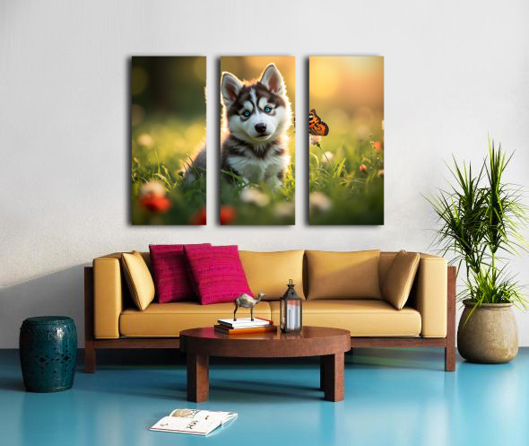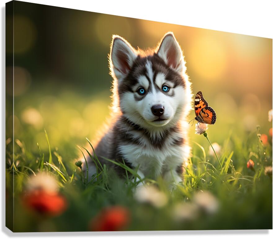 Butterfly Lands Gently On Husky Puppys Nose Canvas print