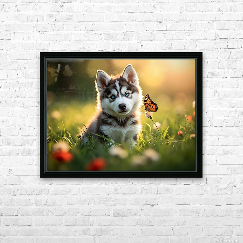 Get this artwork "Butterfly Lands Gently On Husky Puppys Nose" in a framed print.