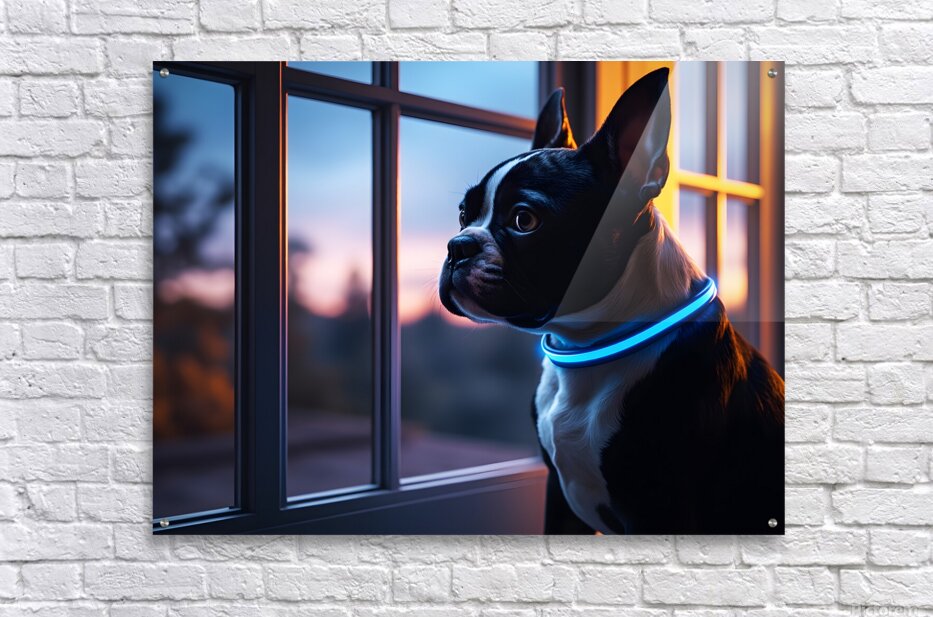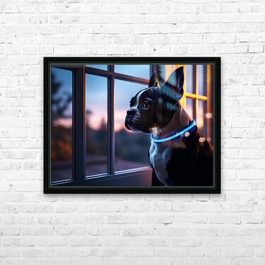 Boston Terrier Puppy Gets Special Collar Picture Frame Printing