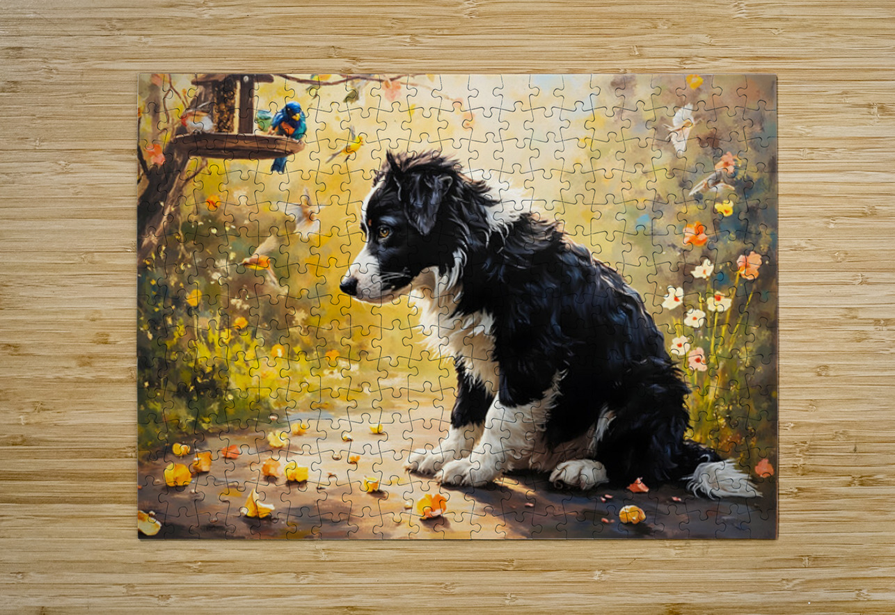 Content Border Collie Puppy Enjoys Watching Birds From Garden Below Puppy Prints Puzzle printing