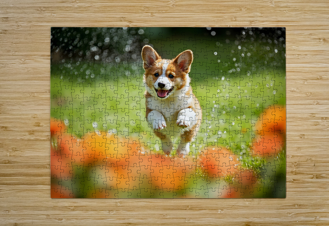Corgi Puppy Discovers The Magical Water Fountain Puppy Prints Puzzle printing