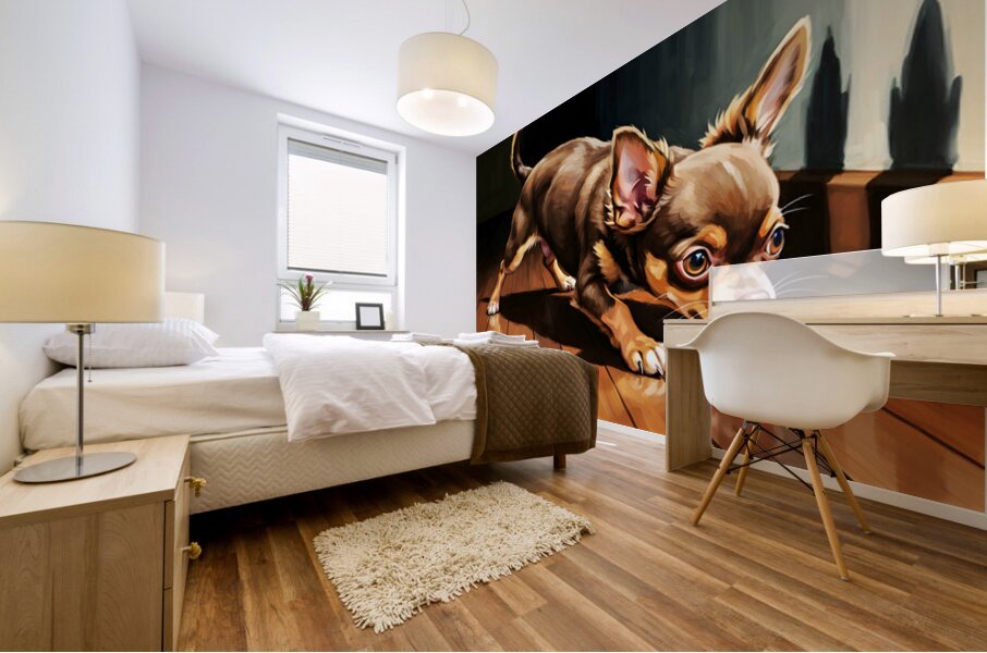 ABOUT THIS ARTWORK: CHIHUAHUA PUPPY DISCOVERS DANCING WALL SHADOWS