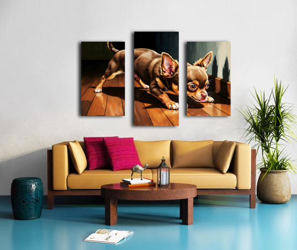 Chihuahua Puppy Discovers Dancing Wall Shadows Canvas print