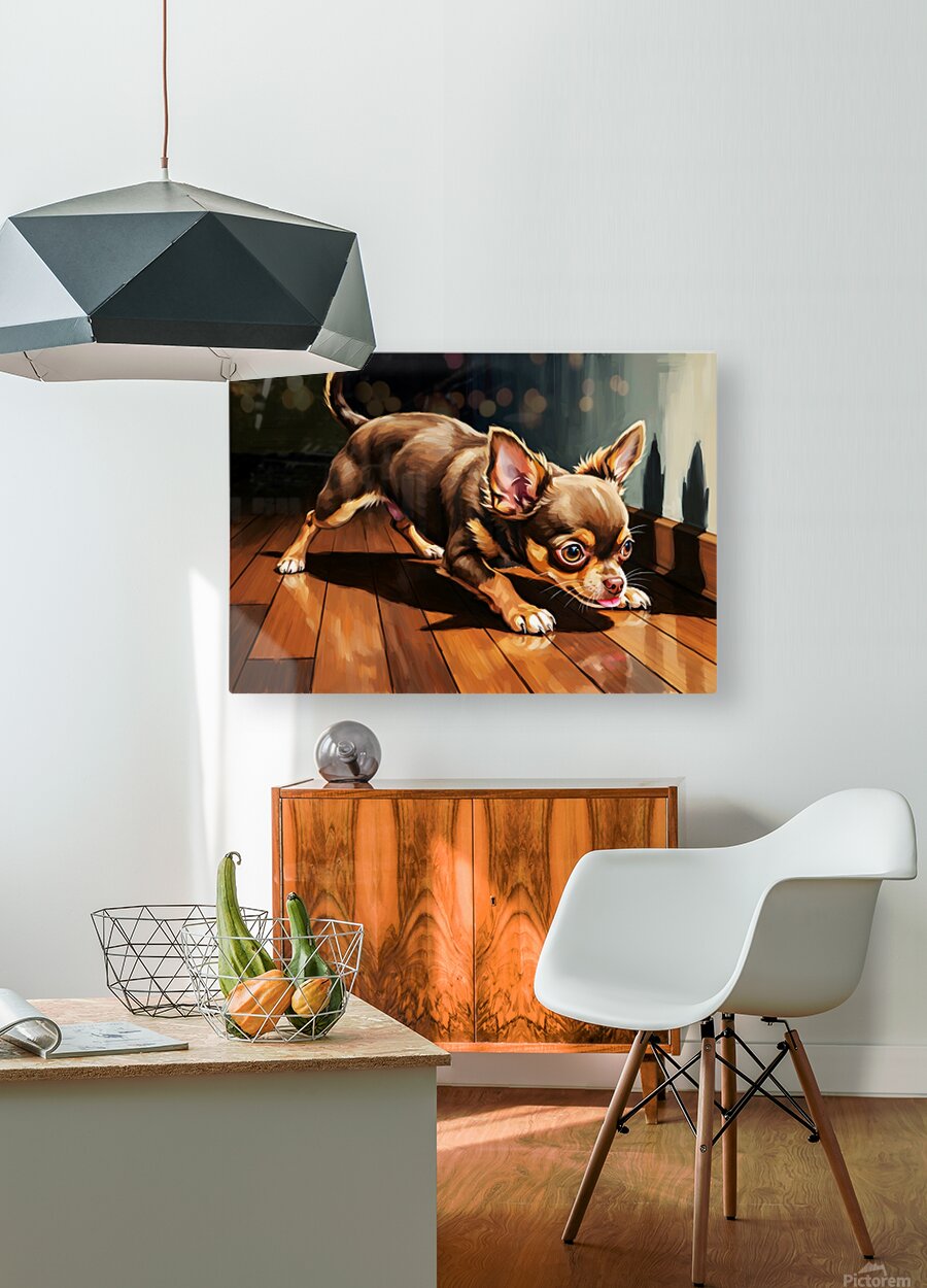 Get this artwork "Chihuahua Puppy Discovers Dancing Wall Shadows" in a framed print.