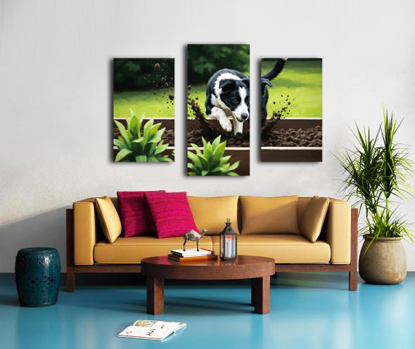Border Collie Puppy Discovers Garden Bed Canvas print
