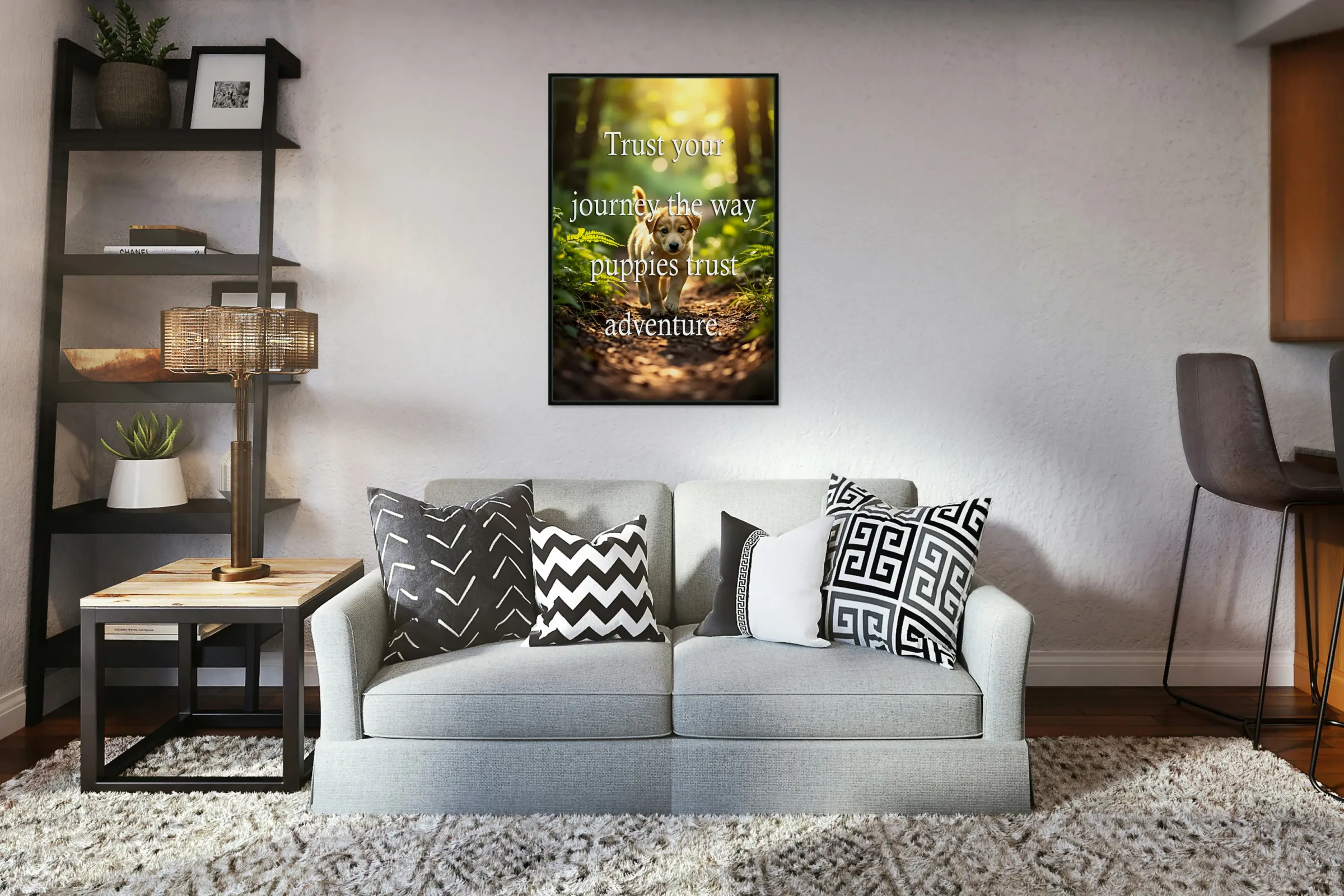 Get this artwork "Trust Your Journey Like Adventurous Puppies" in a framed print.