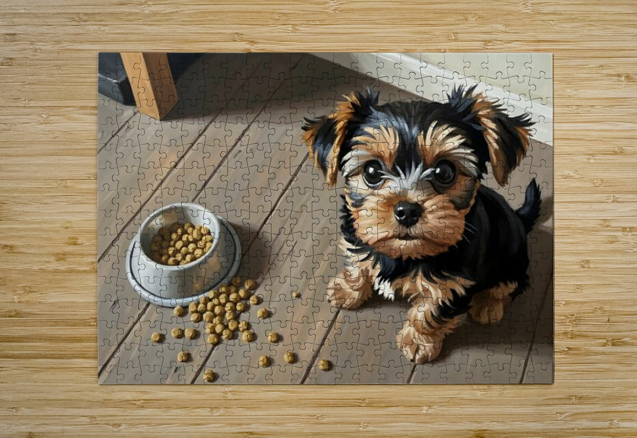 Brown Yorkshire Terrier Puppy With Overturned Food Bowl Puppy Prints Puzzle