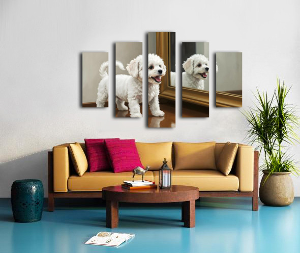 Playful White Bichon Frise Puppy Invites Mirror Reflection To Play Impression sur toile