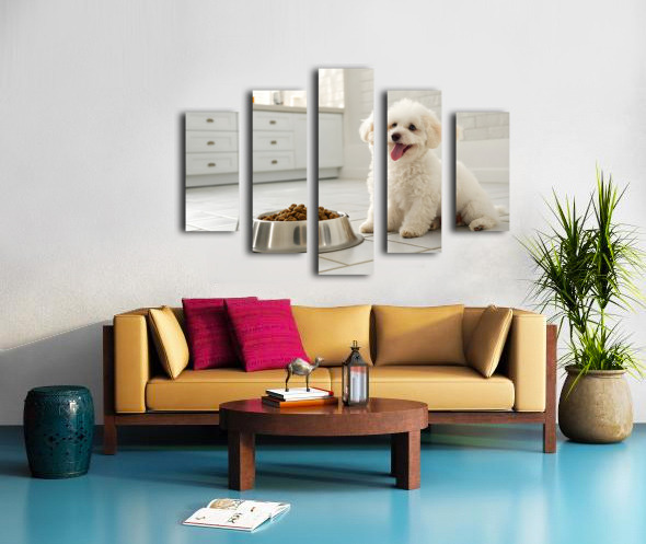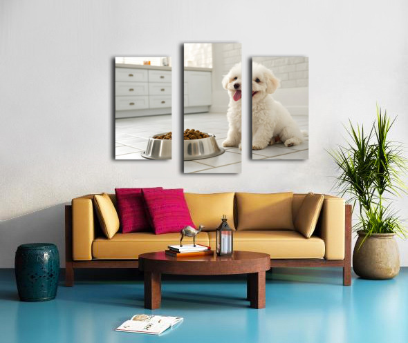 Poodle Puppys Dinner Time Excitement Impression sur toile