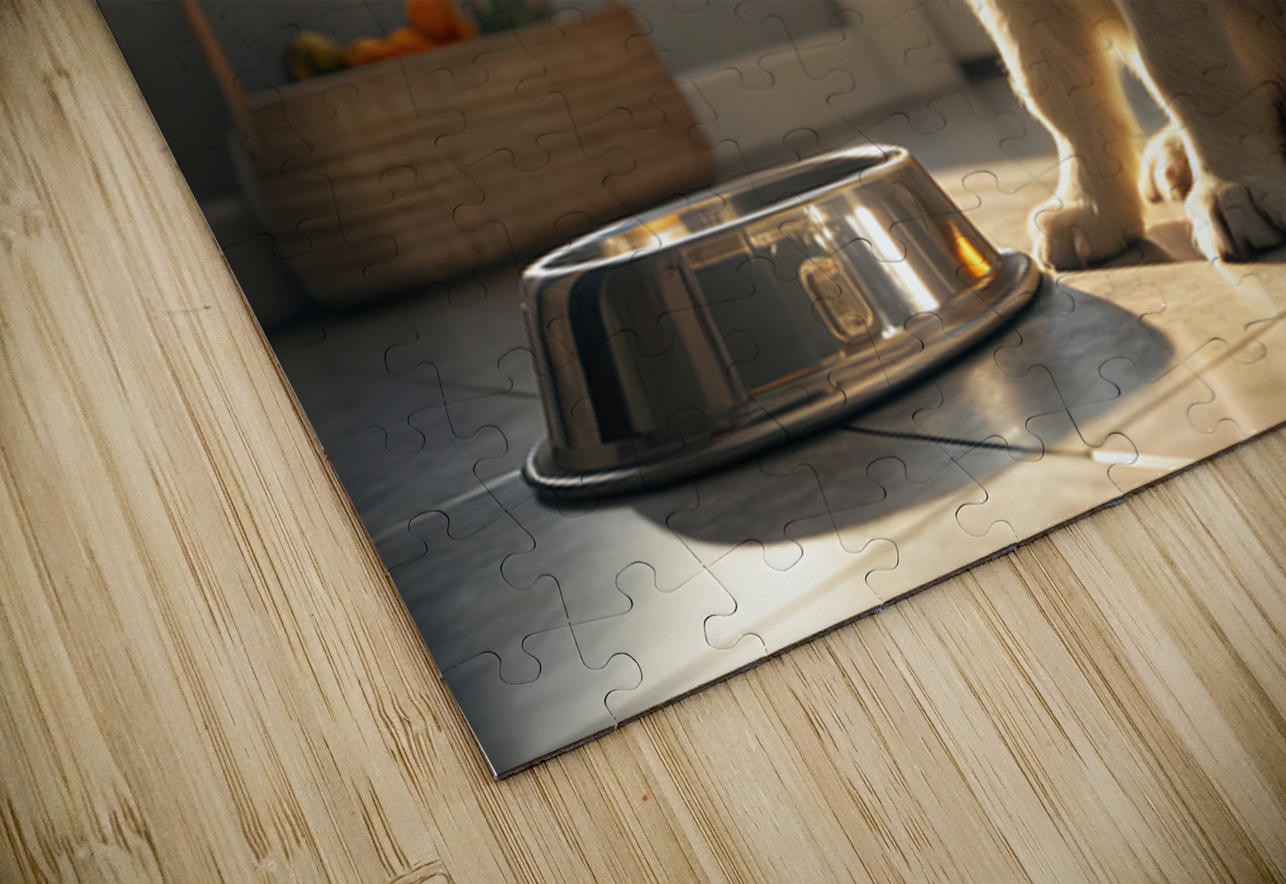 Golden Retriever Puppy Discovers Empty Food Bowl Puppy Prints Impression de puzzle