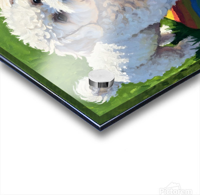 SUR CETTE OEUVRE: BICHON FRISE PUPPY DISCOVERS PICNIC SPREAD