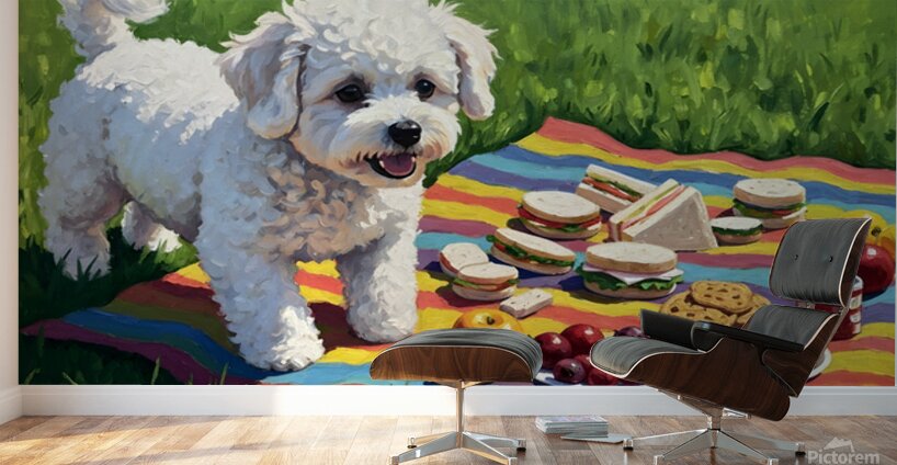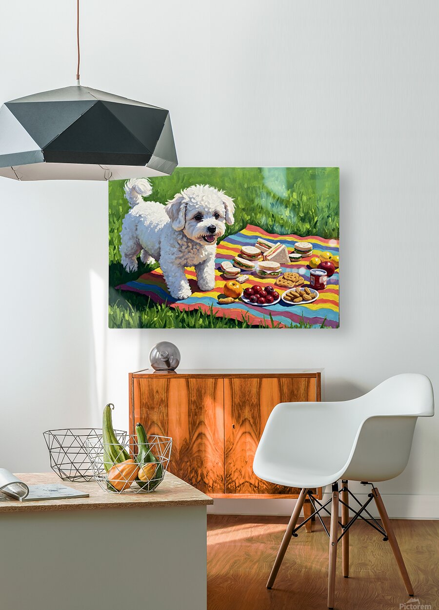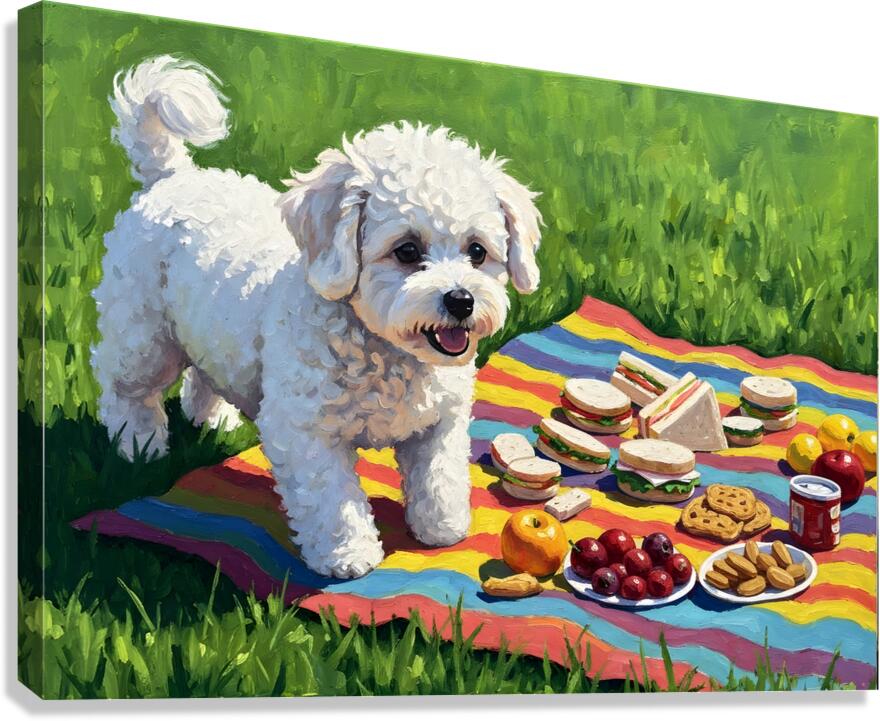 Bichon Frise Puppy Discovers Picnic Spread Impression sur toile