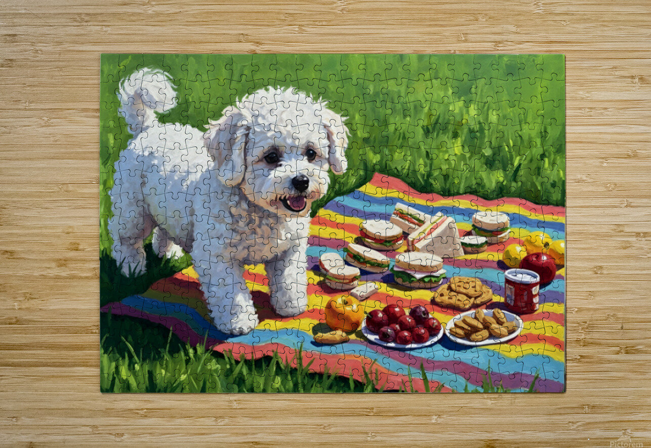 Bichon Frise Puppy Discovers Picnic Spread Puppy Prints Puzzle