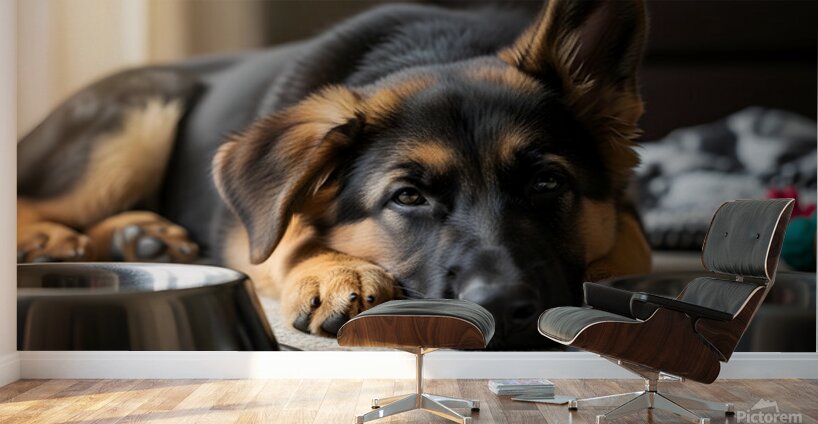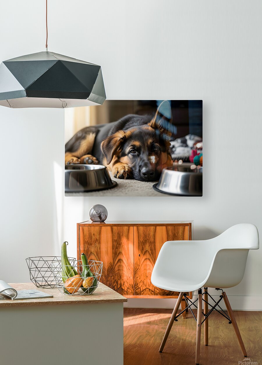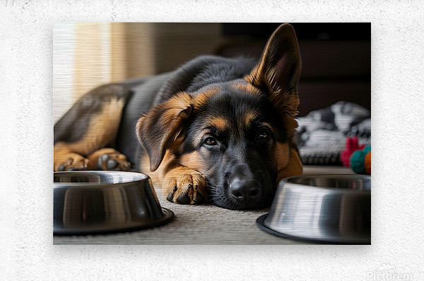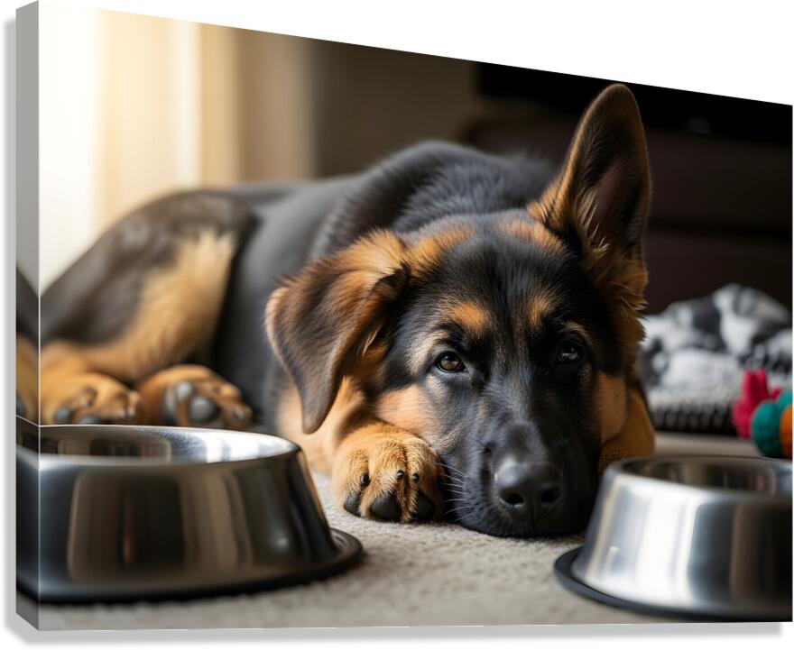 Drowsy German Shepherd Puppy Resting After Eating Impression sur toile