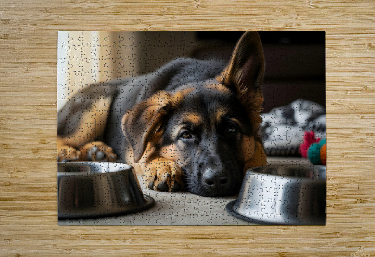 Drowsy German Shepherd Puppy Resting After Eating Puppy Prints Impression de puzzle