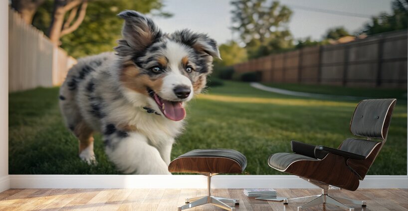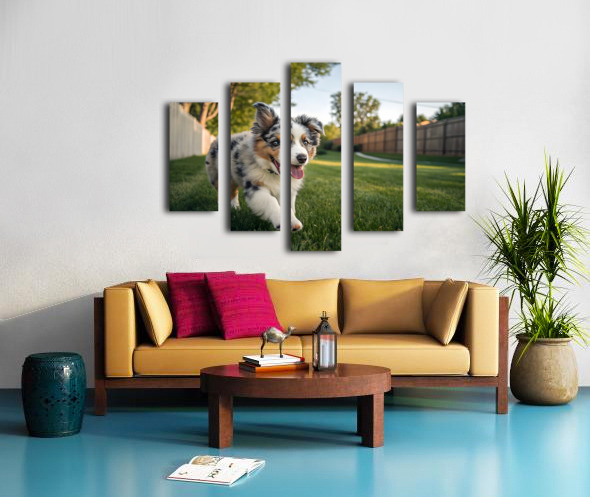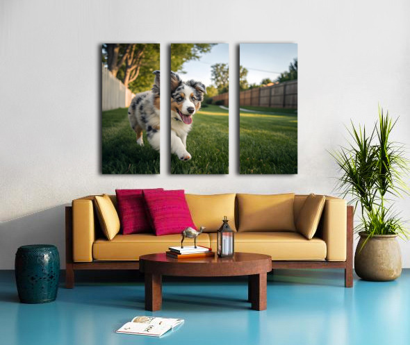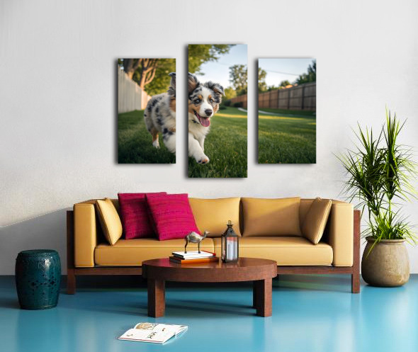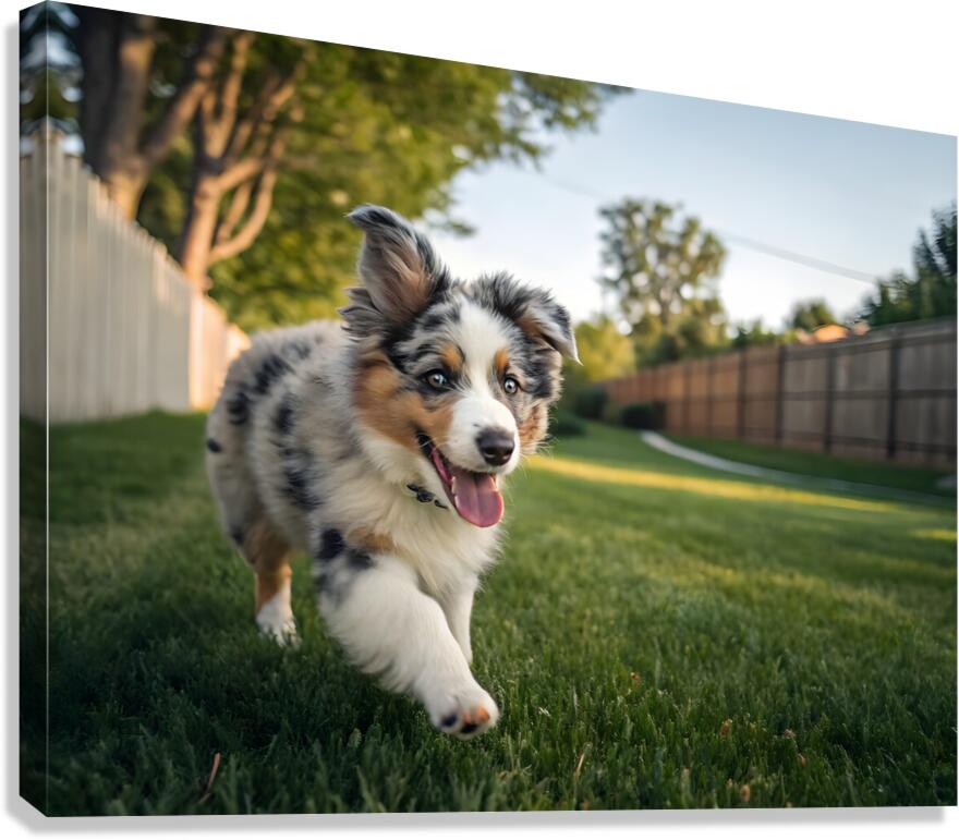 Australian Shepherd Puppy Gets The Zoomies In Backyard Impression sur toile