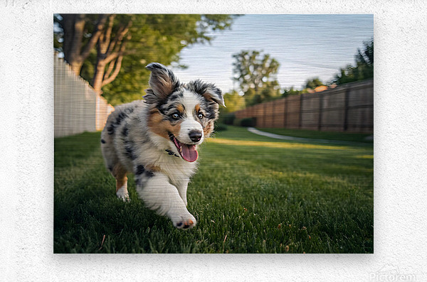 SUR CETTE OEUVRE: AUSTRALIAN SHEPHERD PUPPY GETS THE ZOOMIES IN BACKYARD