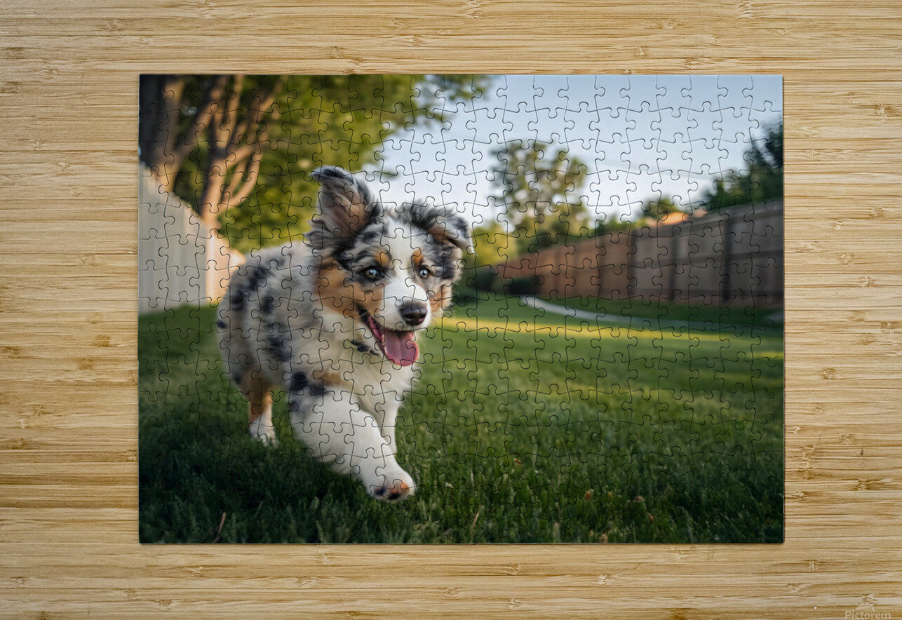 Australian Shepherd Puppy Gets The Zoomies In Backyard Puppy Prints Puzzle