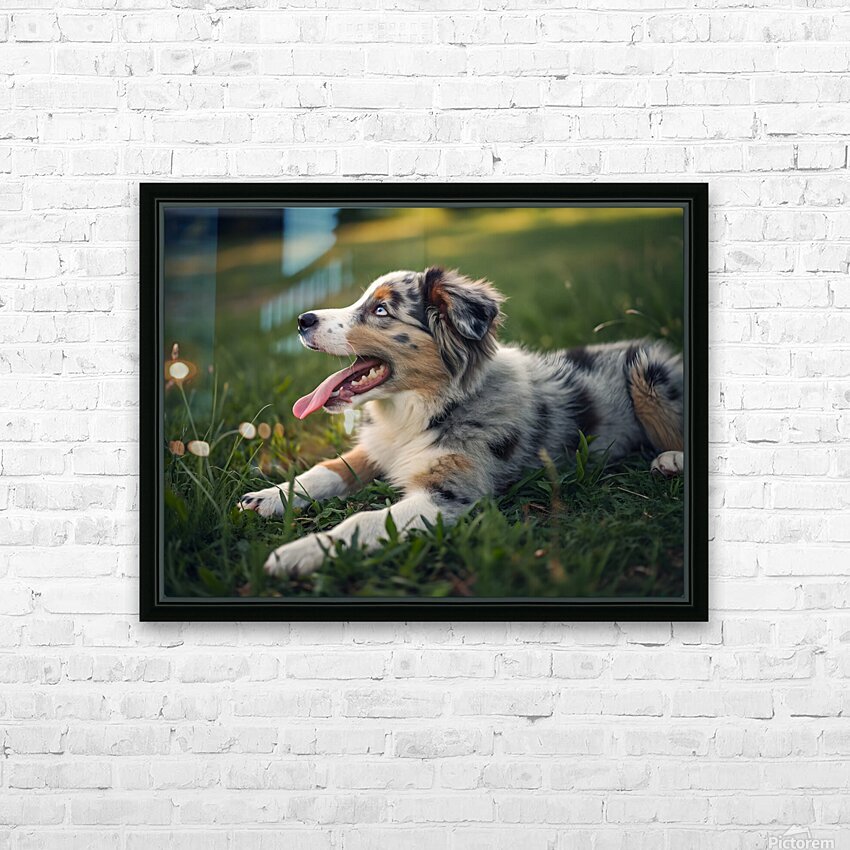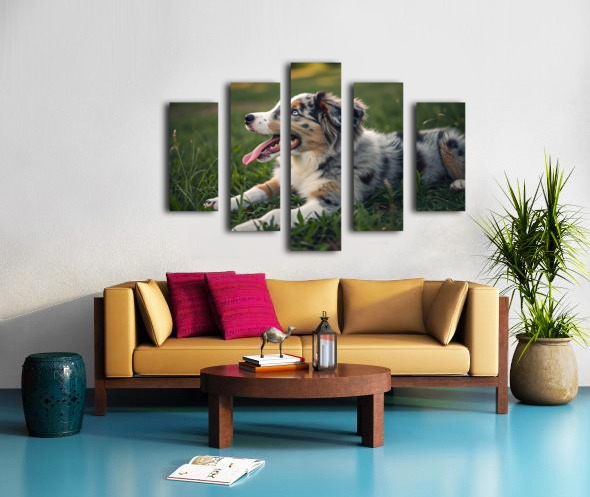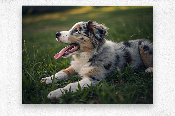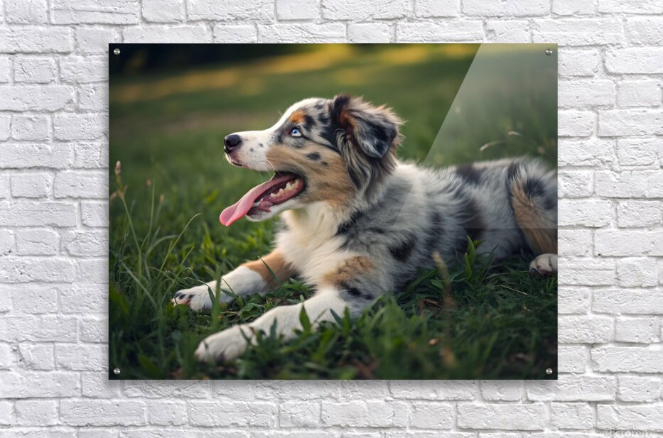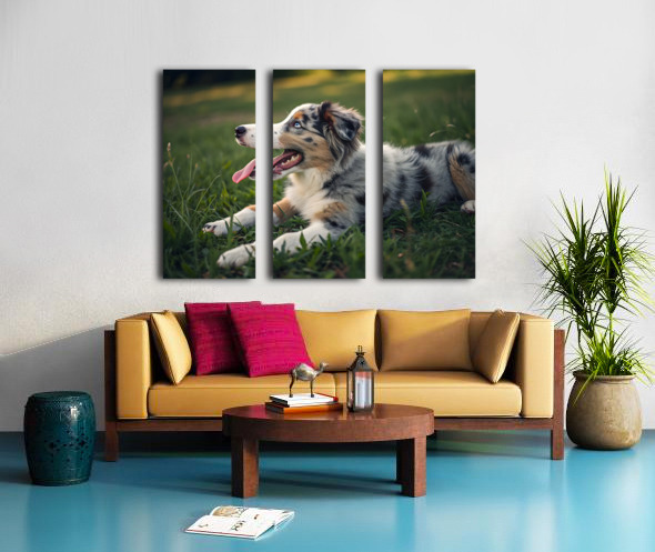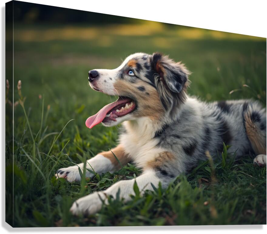 Tired Australian Shepherd Puppy Rests After Zoomies Impression sur toile