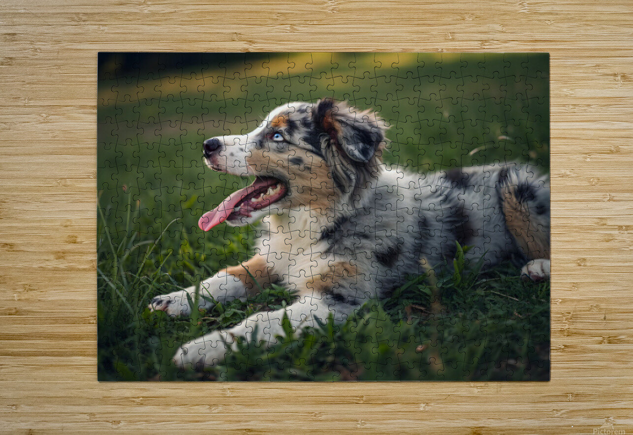 Tired Australian Shepherd Puppy Rests After Zoomies Puppy Prints Impression de puzzle