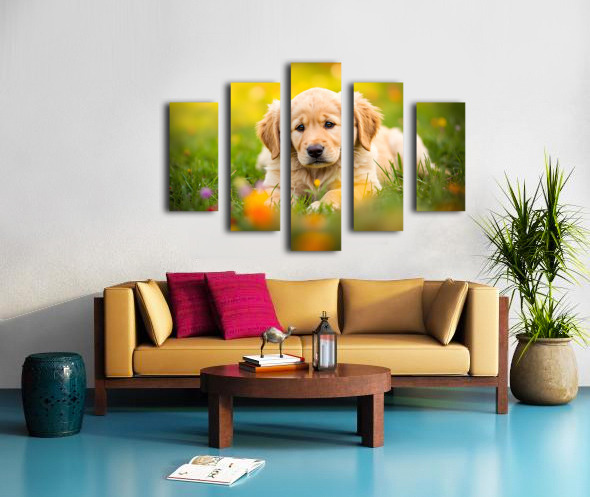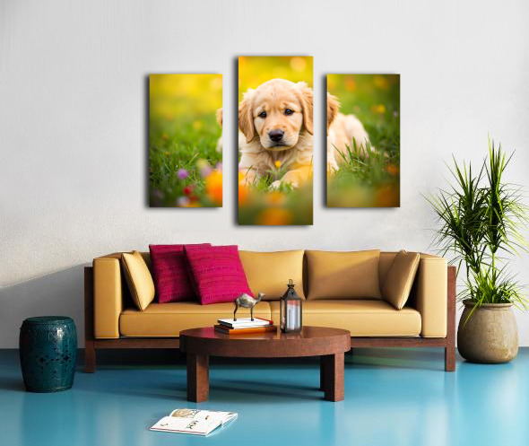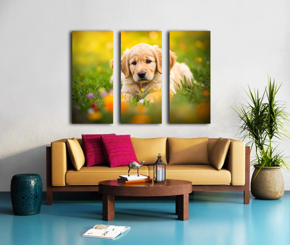 Golden Puppy Discovers The Perfect Stretch Position Impression sur toile