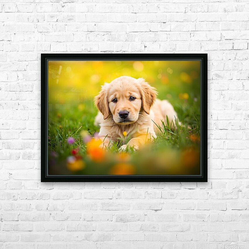 SUR CETTE OEUVRE: GOLDEN PUPPY DISCOVERS THE PERFECT STRETCH POSITION
