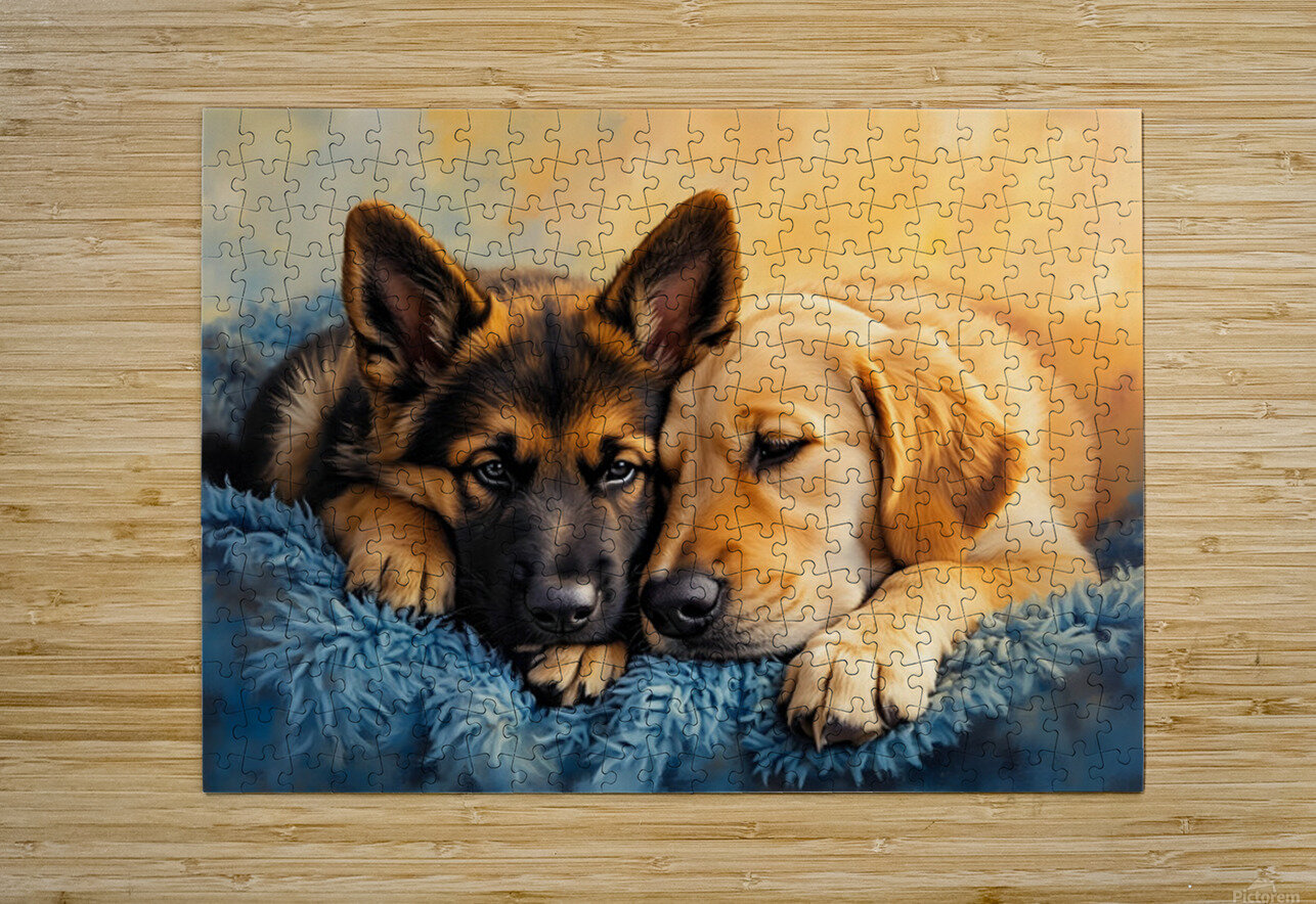German Shepherd Puppy Snuggles With Golden Friend Puppy Prints Puzzle