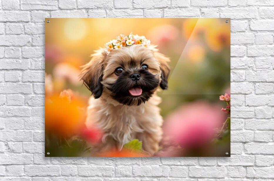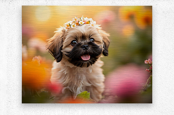 SUR CETTE OEUVRE: SHIH TZU PUPPY DISCOVERS BEAUTIFUL FLOWER CROWN