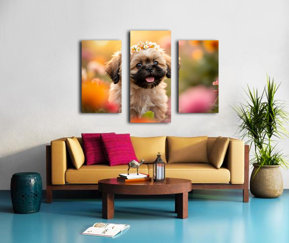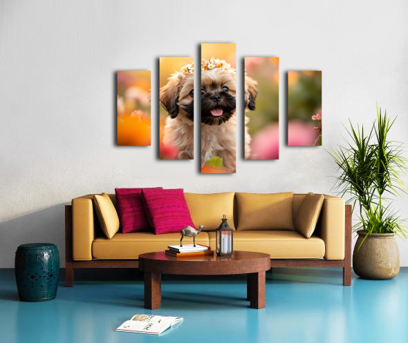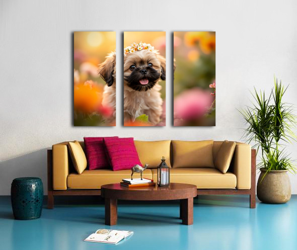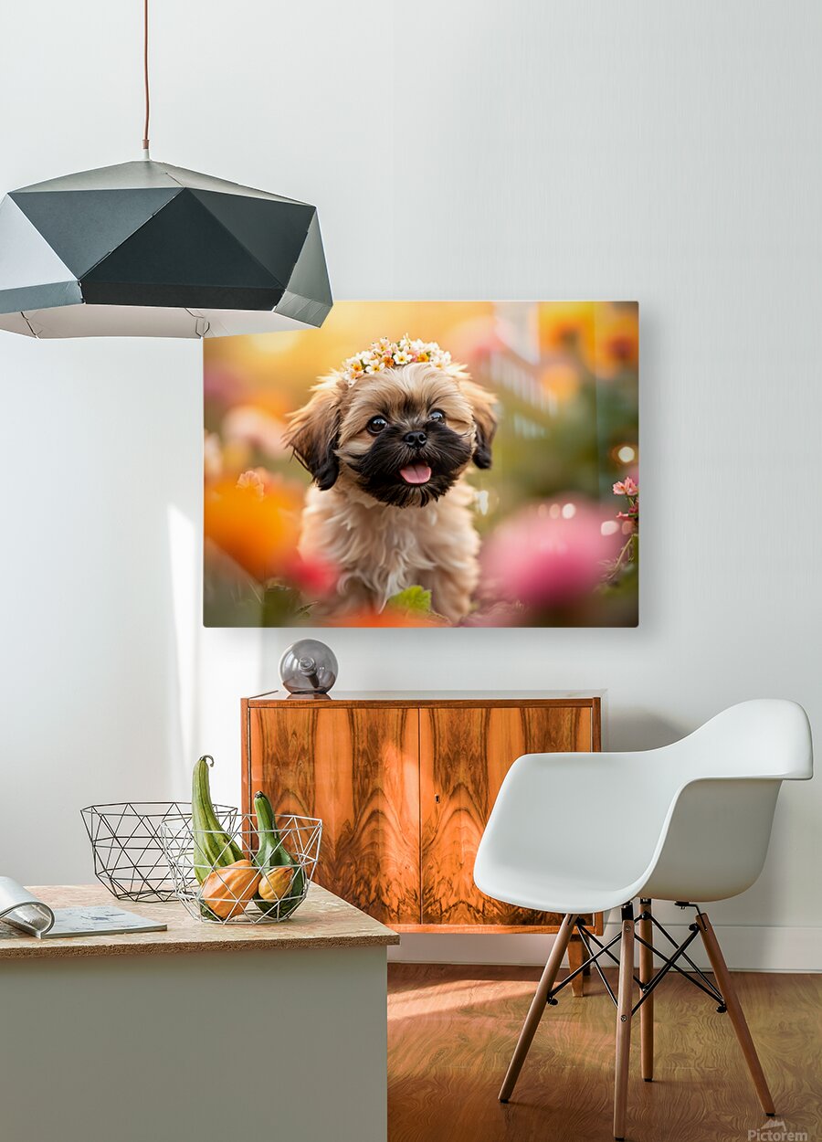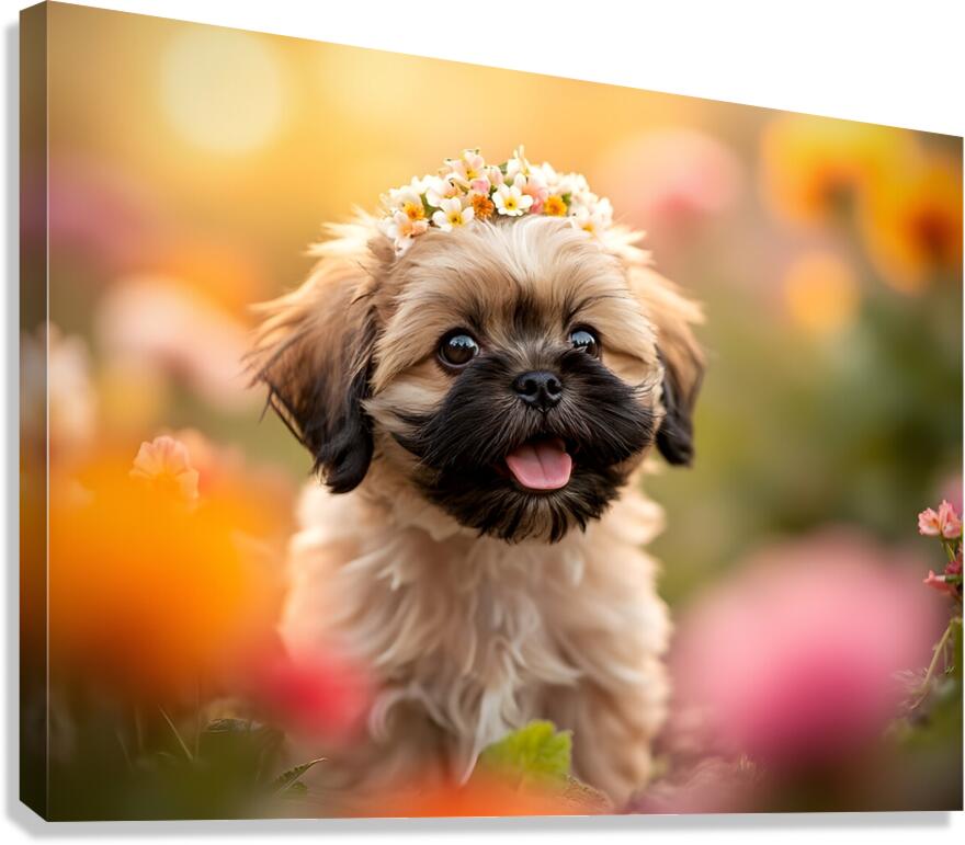 Shih Tzu Puppy Discovers Beautiful Flower Crown Impression sur toile
