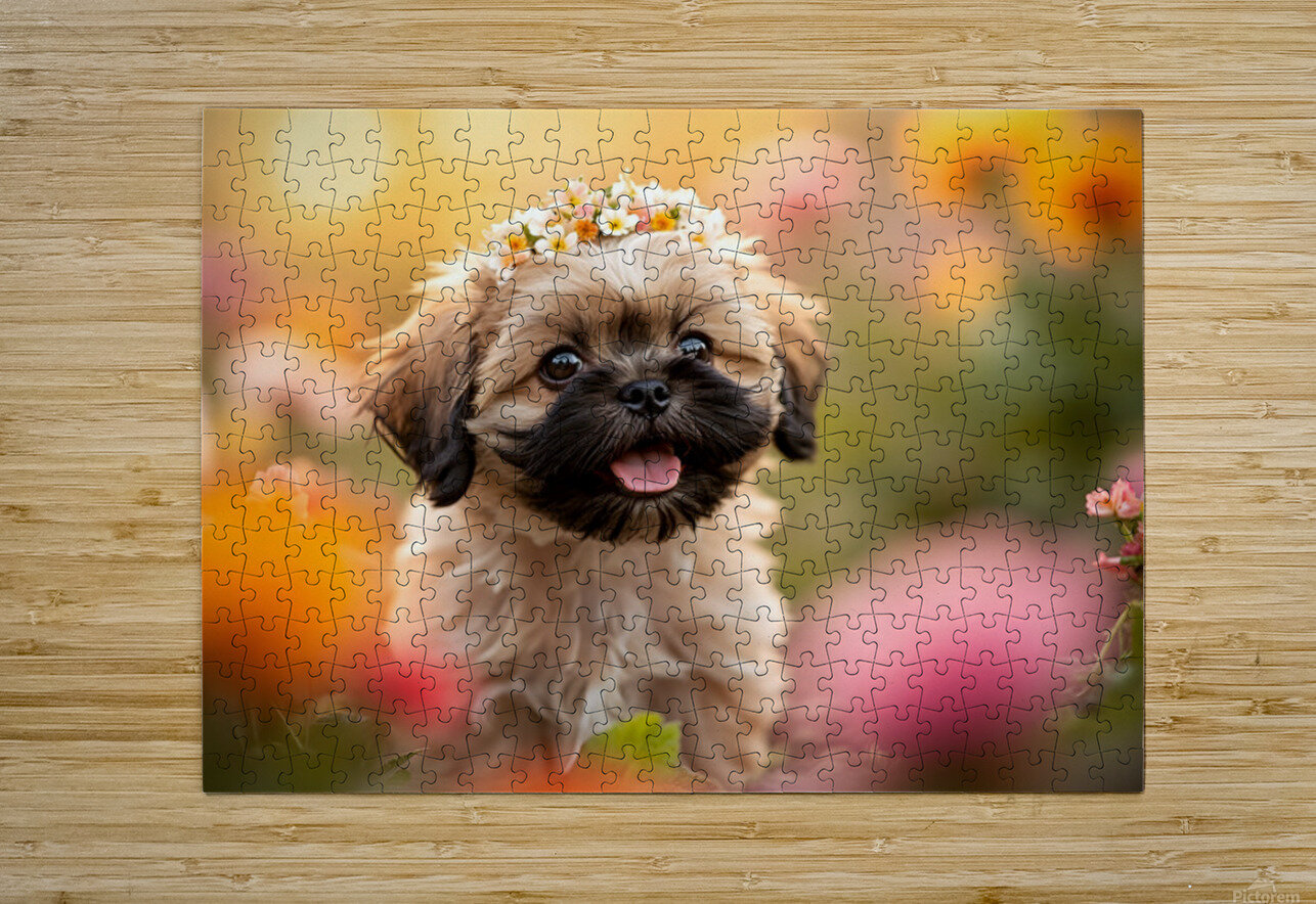 Shih Tzu Puppy Discovers Beautiful Flower Crown Puppy Prints Puzzle