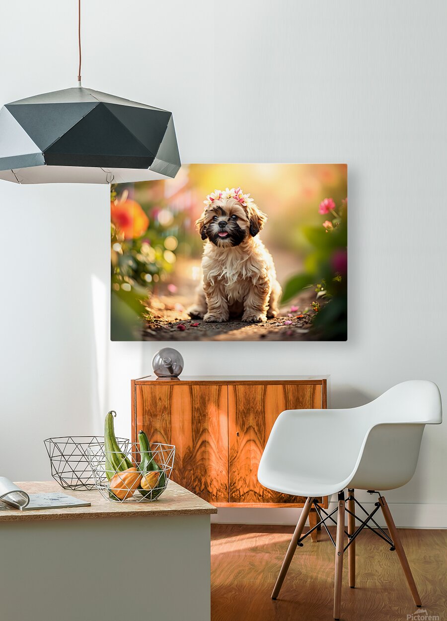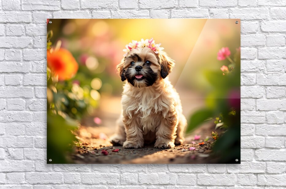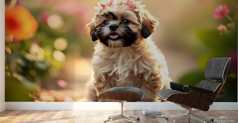 SUR CETTE OEUVRE: SHIH TZU PUPPY SITS PROUDLY WEARING FLOWER CROWN