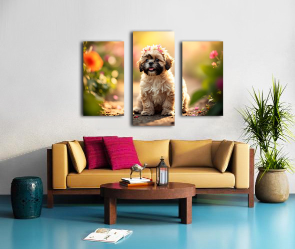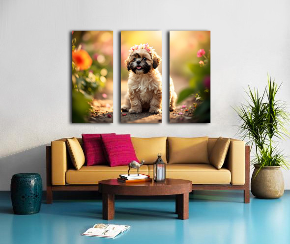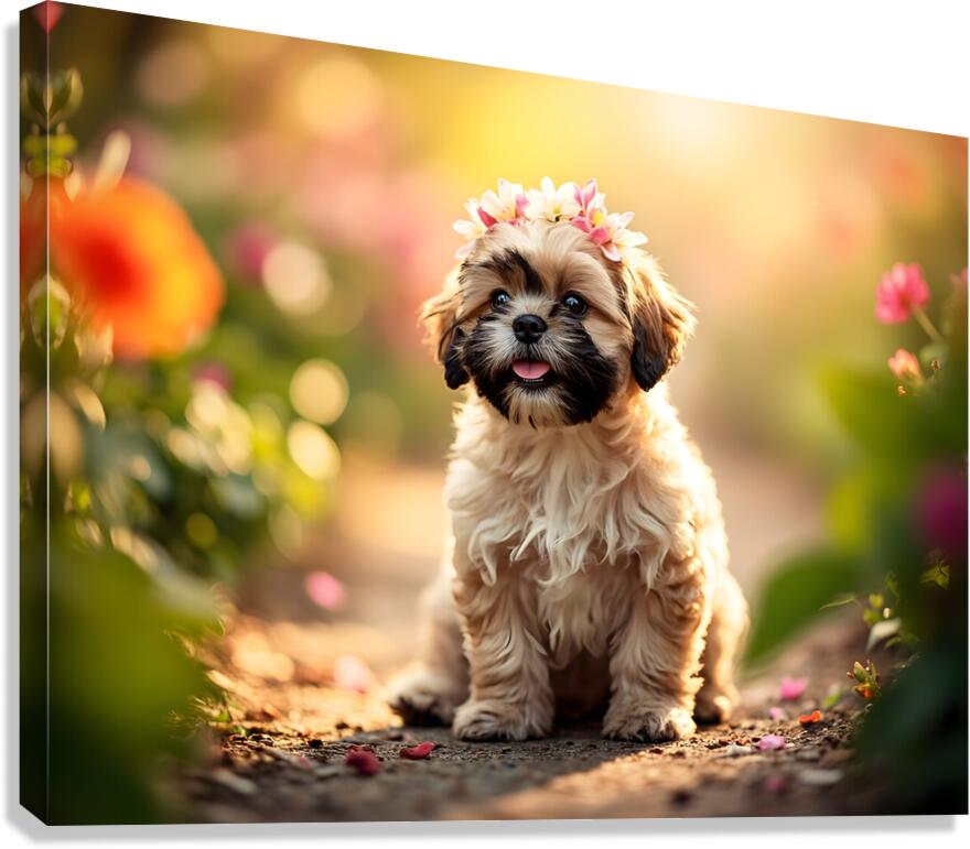 Shih Tzu Puppy Sits Proudly Wearing Flower Crown Impression sur toile