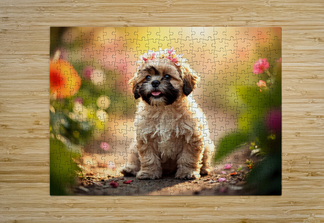Shih Tzu Puppy Sits Proudly Wearing Flower Crown Puppy Prints Puzzle