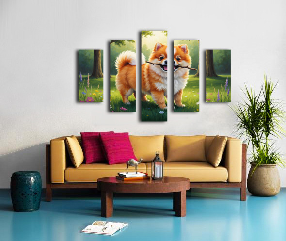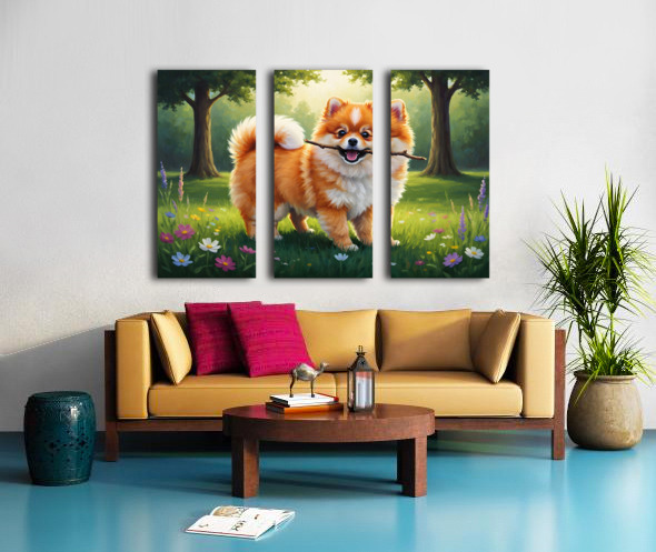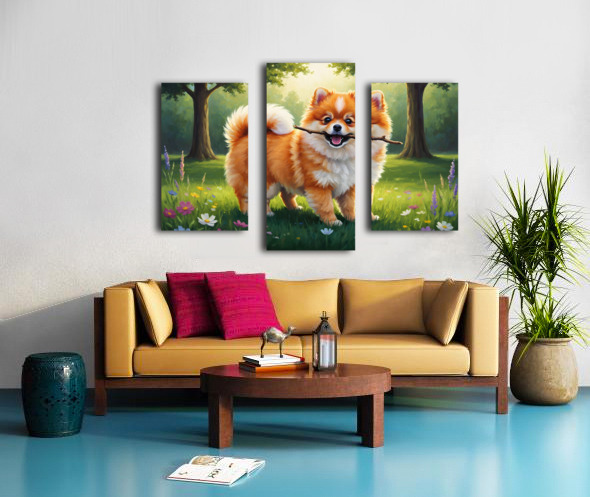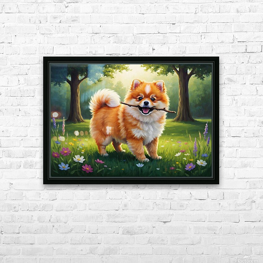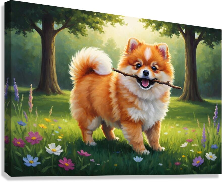 Pomeranian Puppy Discovers Perfect Stick Impression sur toile