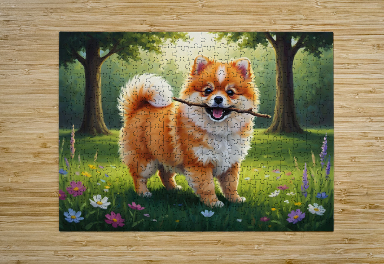 Pomeranian Puppy Discovers Perfect Stick Puppy Prints Impression de puzzle