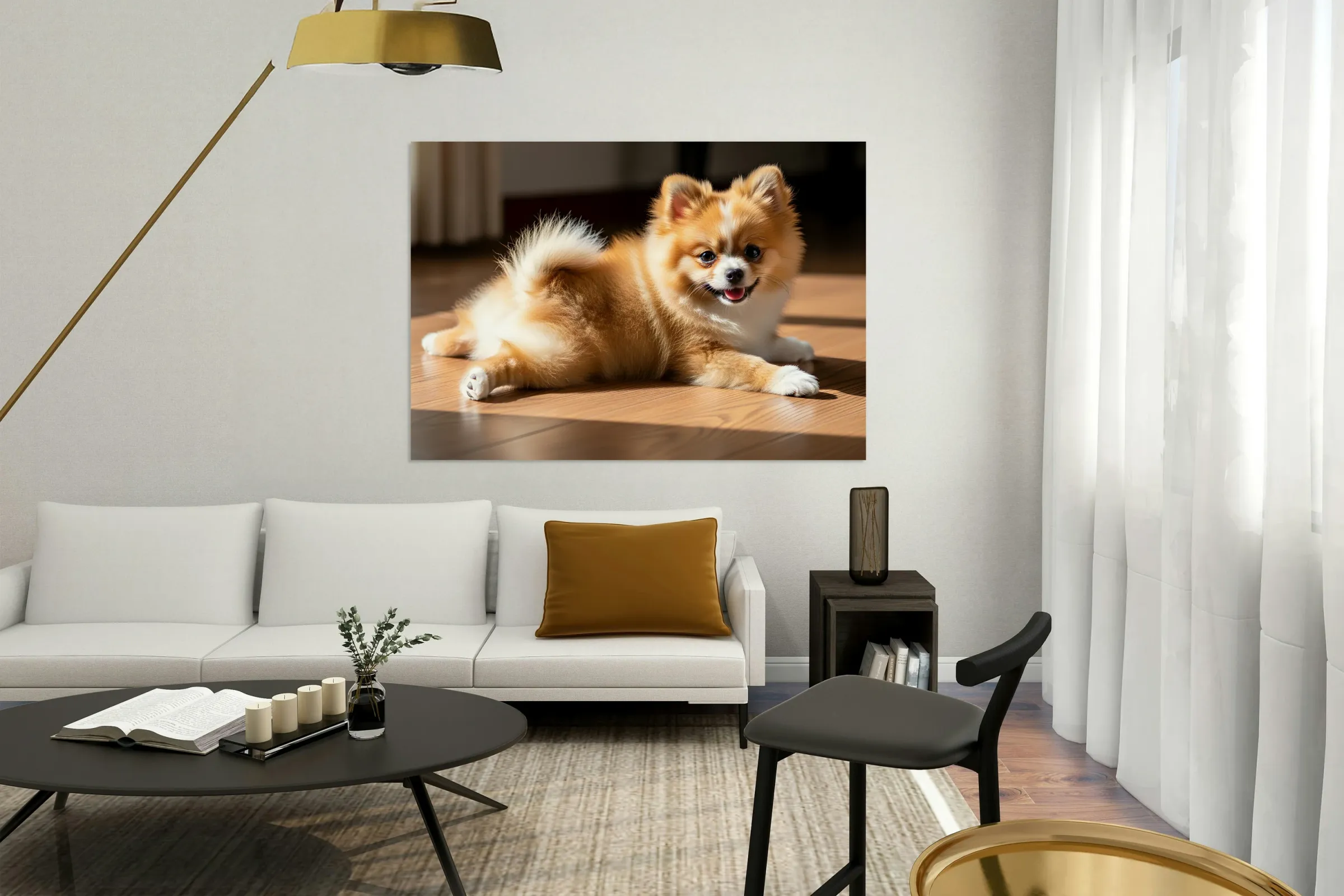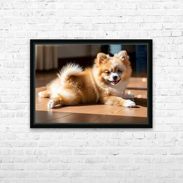 Pomeranian Puppy Returns To Beloved Sploot Position Impression du cadre