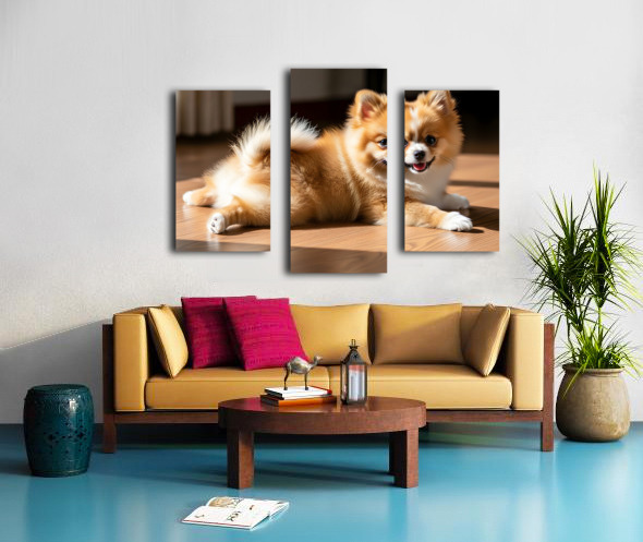 Pomeranian Puppy Returns To Beloved Sploot Position Impression sur toile