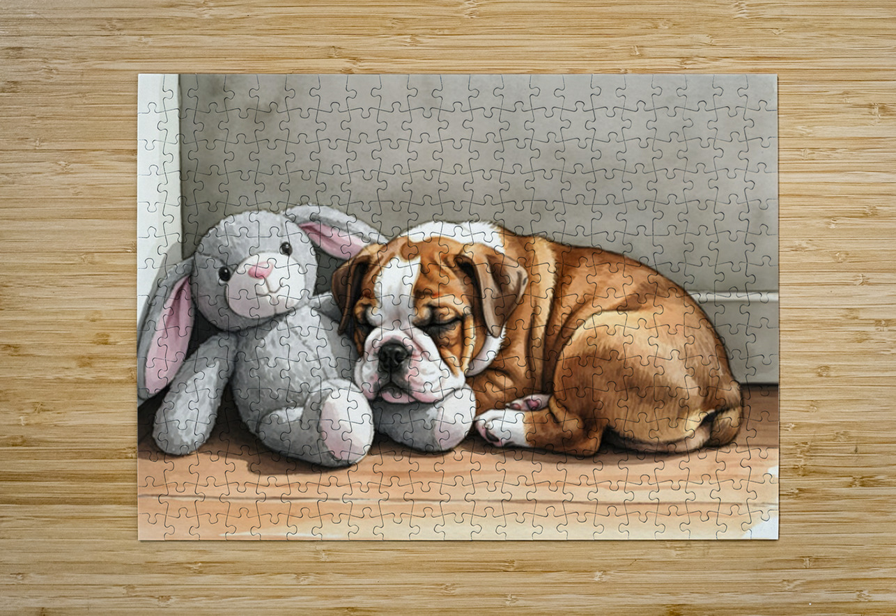 Bulldog Puppy Naps With His Beloved Rabbit Friend Puppy Prints Puzzle