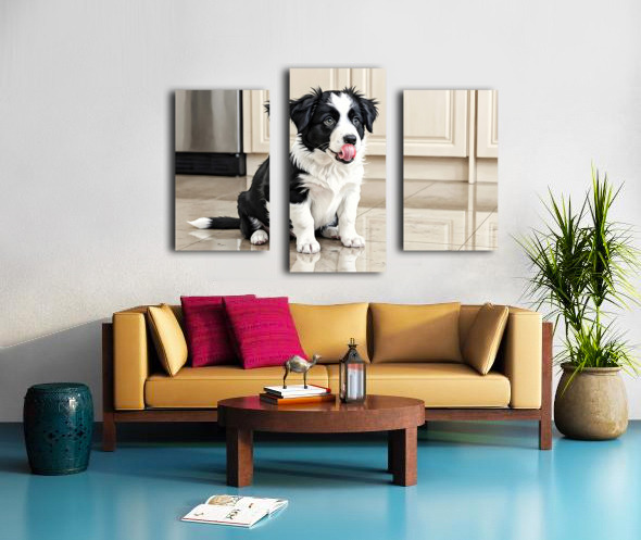 Border Collie Puppy Anticipates Delicious Treat Impression sur toile