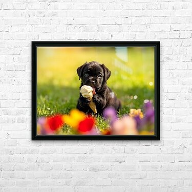 SUR CETTE OEUVRE: CANE CORSO PUPPY DISCOVERS SWEET ICE CREAM TREAT