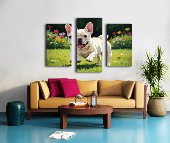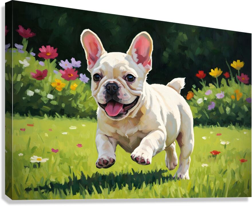 French Bulldog Puppy Running In Sunny Yard Impression sur toile