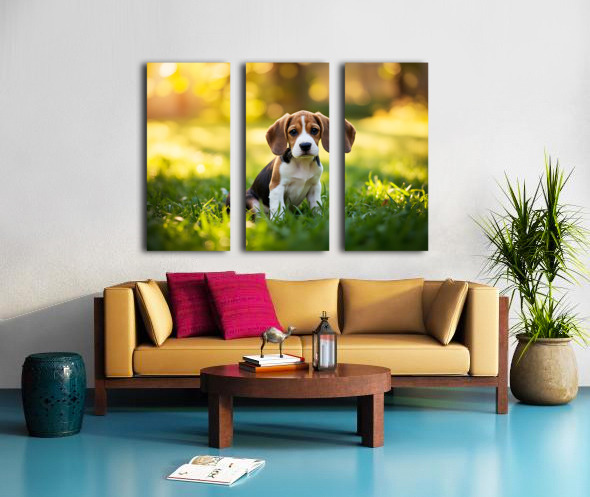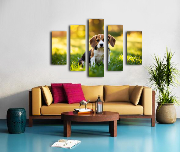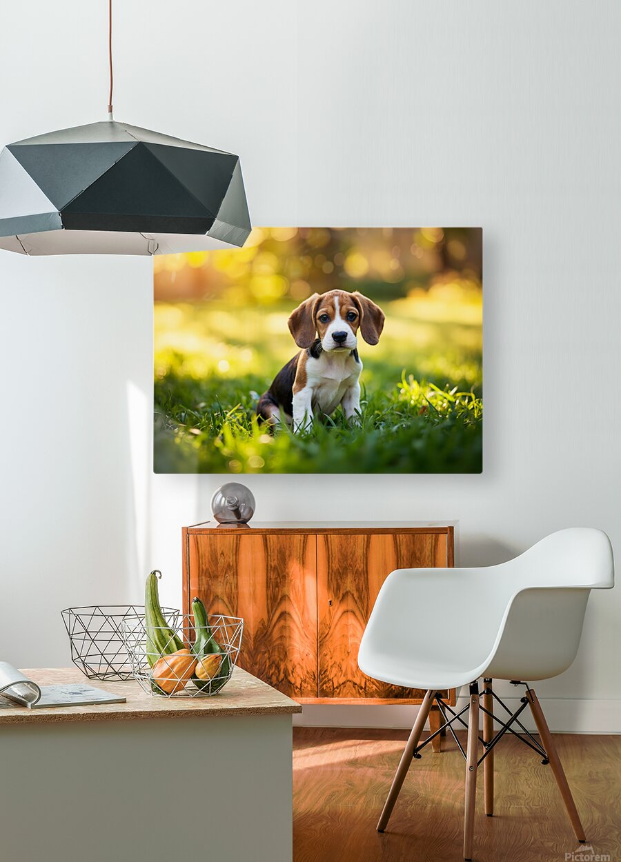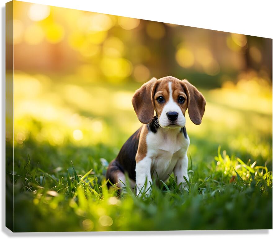 Beagle Puppy Senses Something Strange Behind Him Impression sur toile